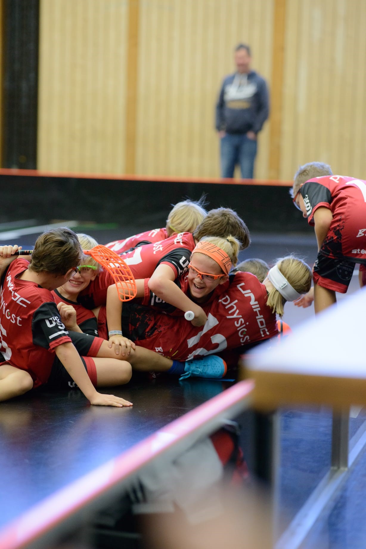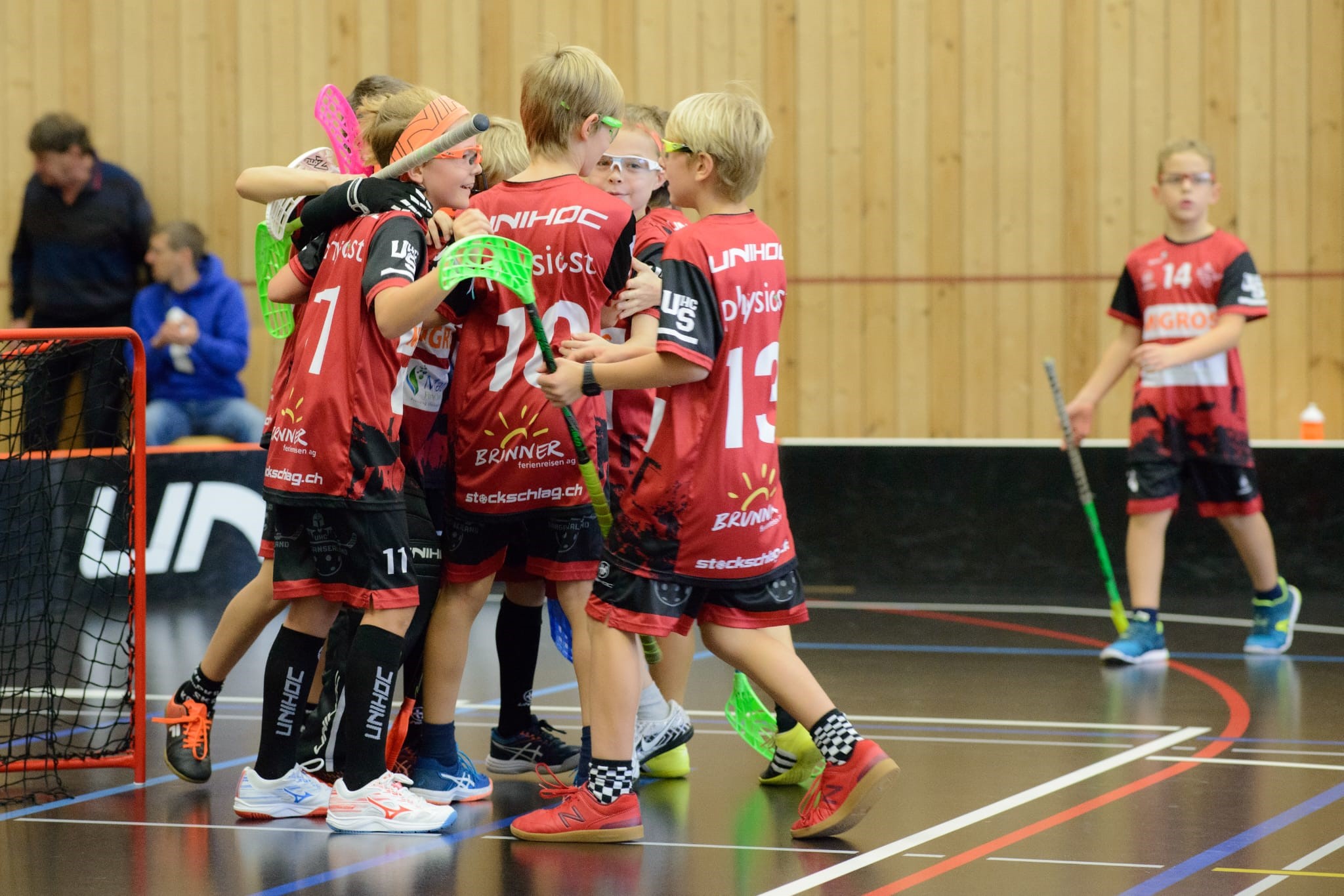Im zweiten Spiel des Tages ging es gegen die Iron Marmots Davos zur Sache. Sargans Rot konnte auch dieses Spiel von Beginn weg kontrollieren. Die diversen Torchancen wurden auch eiskalt genutzt, so war rasch die Führung da. Auch dieses Spiel gewannen die „roten“ Sarganserländer, 7:3 hiess es am Schluss.  Ein Wink ins Publikum und ein grosser Haufen jubelnder Unihockey-Kids – so feierten die UHCS-Junioren einen erfolgreichen Tag in Sargans.